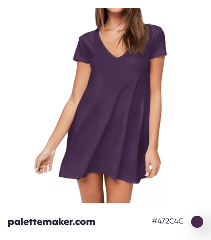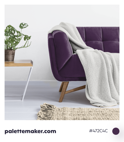 HEX color code is #472C4C and the RGB is 71, 44, 76