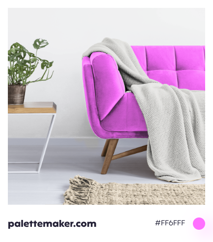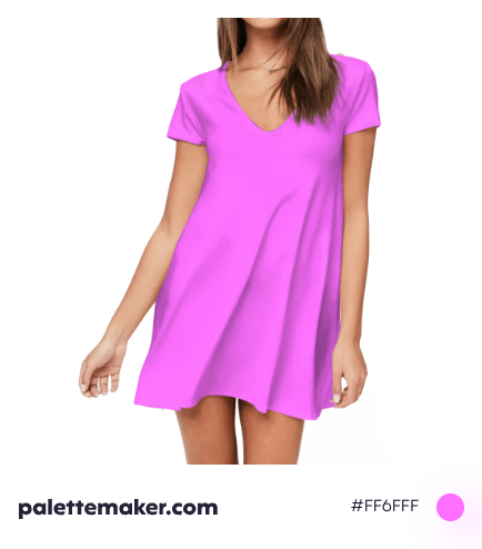 HEX color code is #FF6FFF and the RGB is 255, 111, 255