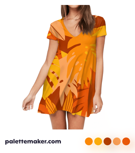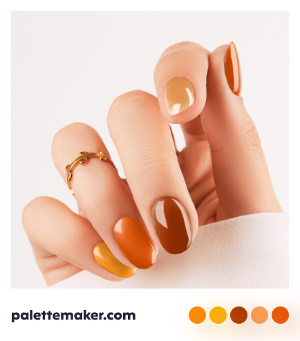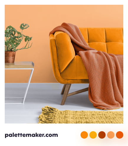 A color palette that includes Burnt Sienna, sage green, hunter green, marigold, maize, and dark orange will create an autumnal aesthetic that feels casual and harmonious.