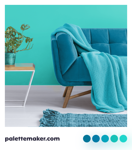 Using a color palette that contains multiple shades of blue beside cerulean can create an atmospheric aura leading to further enhance the feeling of calmness. Yet to add more interest add a warm color, preferably as an accent, such as browns, yellows, yellow-orange. Yet, to add some drama to blue you can add cream, pink or any other warm feminine color.