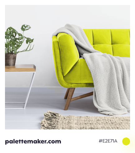 To create a modern color palette, use a light neutral as a base with chartreuse as a secondary or an accent color. Instead of neutrals, you can base the palette on a dark blue color such as navy blue. If decided to use chartreuse as a base color anyway, you can use deep reds, and browns as accents. Chartreuse can be used alongside shades of green and shades of yellow for an interesting analogous color palette that fits to be used in graphic design rather than interior design.