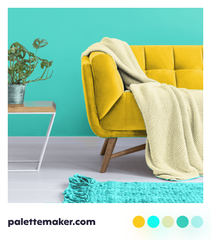 Cyan is a color of tranquility and calmness, yet it takes some of energy inherited from green. In interior design, cyan creates a calming vibe that is perfect to revamp one's mood. The color even though refreshing, it also gives a sense of cleanness so it is used often in cosmetics and cleaning product not just because of its cleanness, but because of its other associations.