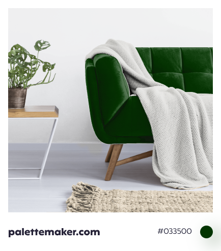 Dark green works best with light greens, which can create an elegant harmony. Metallic colors such as gold, silver and gold will make up a great accent with dark green. Other light brownish color will bring more natural feel to dark green; notably, beige, tan, cream. And to add a touch of vibrance, you can use dark violet.