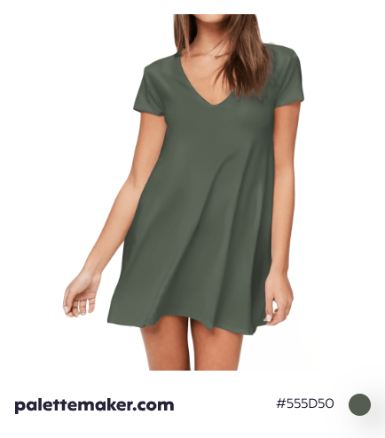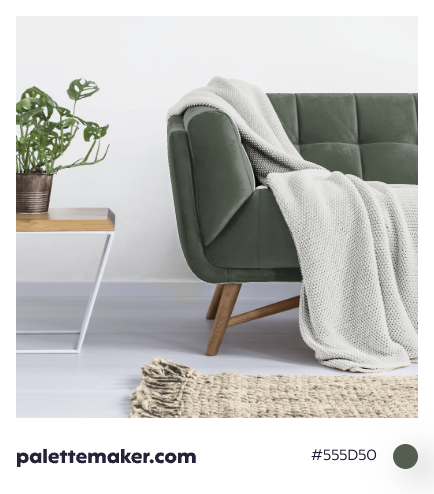 HEX color code is #555D50 and the RGB is 85, 93, 80