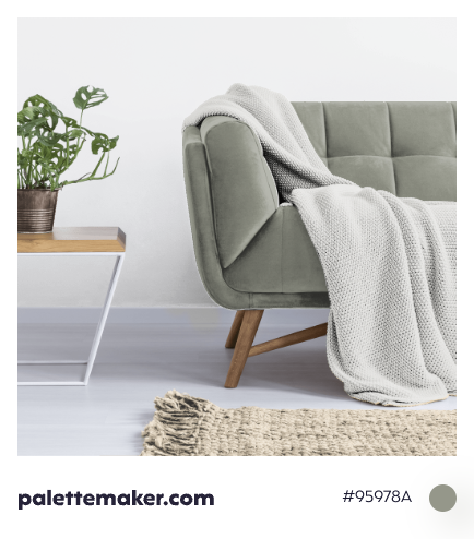 HEX color code is #95978A and the RGB is 149, 151, 138