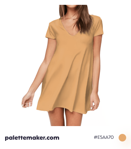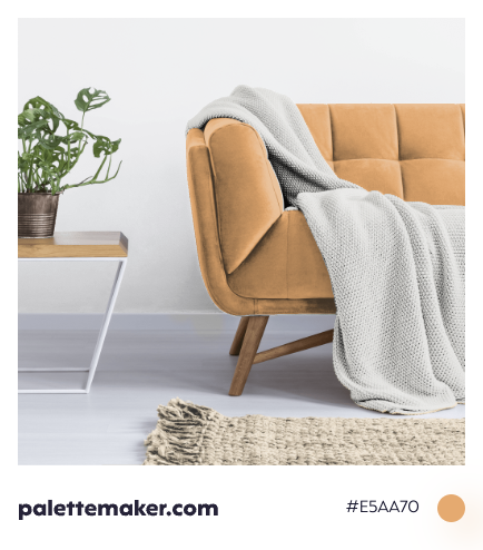 HEX color code is #E5AA70 and the RGB is 229, 170, 112