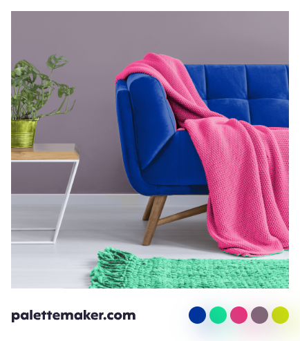 A direct complementary to fuchsia is lime green, and using it as a primary color with touches of fuchsia will create an interesting dynamic in any visual art; that is true if you paired it with vibrant light blues. Picking up on its parents and using shades of purple, pink, and roses alongside fuchsia will create a vibe of belonging which further intensify the warmth of the color.