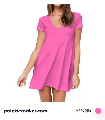 HEX color code is #FF69B4 and the RGB is 255, 105, 180