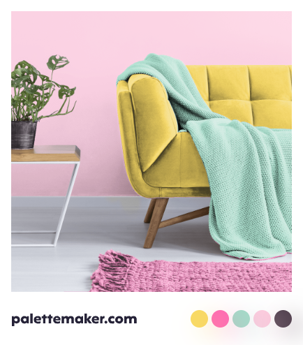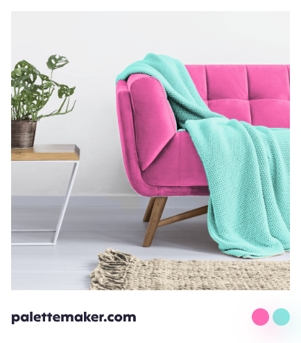 Match Hot Pink with its split-complementary counterparts, Very Light Cyan and Very Light Limer Green for a playful and exciting color combination that will feel like the life of the party.