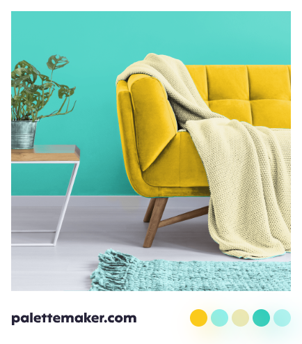 Geometric designs with Indicolite, Gold, and Black will have a striking impact when used as wallpaper. Polka dot backgrounds with Indicolite and White are playful and upbeat, while floral patterns with Indicolite, Pink, Green, and White will have a cottage feel.