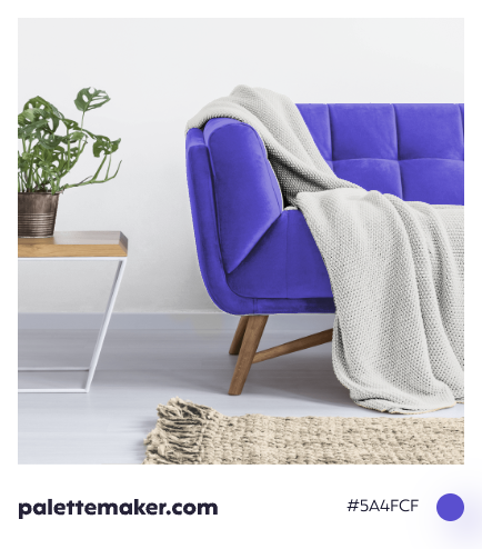 HEX color code is #5A4FCF and the RGB is 90, 79, 207
