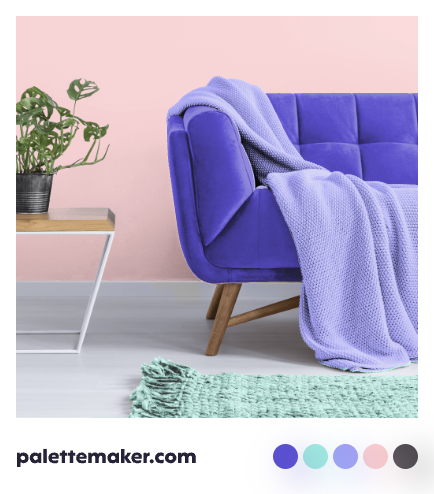 Light Grayish Blue and Iris will result in a palette that feels calm and uplifting, but Iris and Very Dark Blue will make a design feel reserved and aristocratic.
