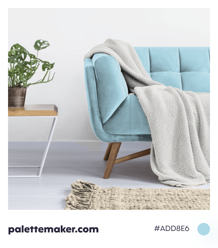 HEX color code is #ADD8E6 and the RGB is 173, 216, 230