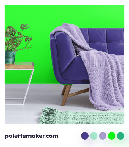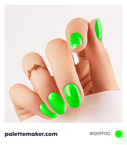 A monochromatic color palette will have tones and shades of Lime Green that make it feel like a tropical paradise. Try Lime Green with Pure Blue, Pure Magenta, and Pure Yellow for a tetradic color palette that has an exuberant vitality.