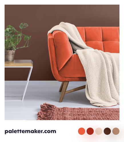 Match Maple with a powdery slate blue for a fun twist on the traditional complementary color combination. Or pair Maple with desaturated violet and desaturated lime green for a triadic color scheme that feels unique.