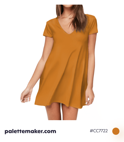 HEX color code is #CC7722 and the RGB is 204, 119, 34