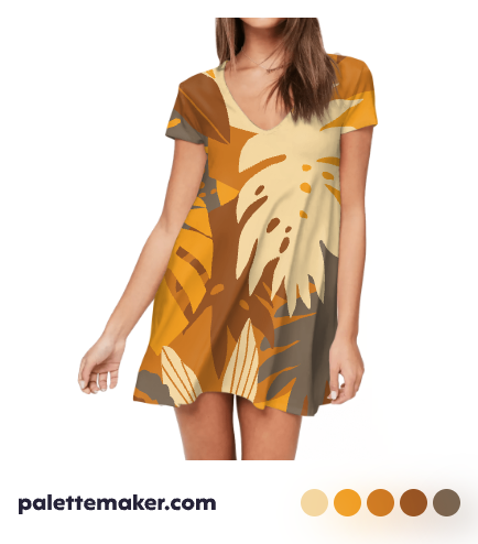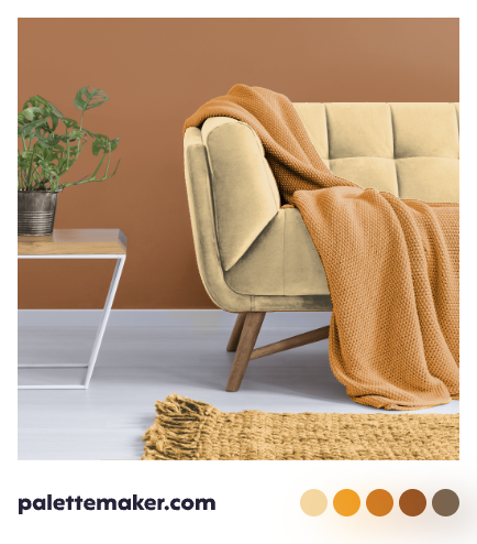 Monochromatic color palettes that include Ochre will have colors that are also in the warm Golden Orange range like Browns, Dark Orange, Soft Orange, and Light Grayish Orange. This palette will have a temperate effect that feels snug and cozy in designs.