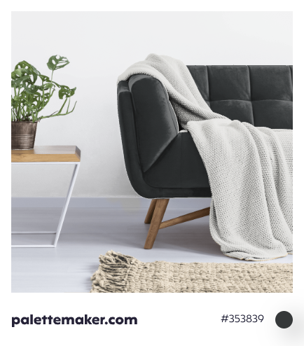 HEX color code is #353839 and the RGB is 53, 56, 57