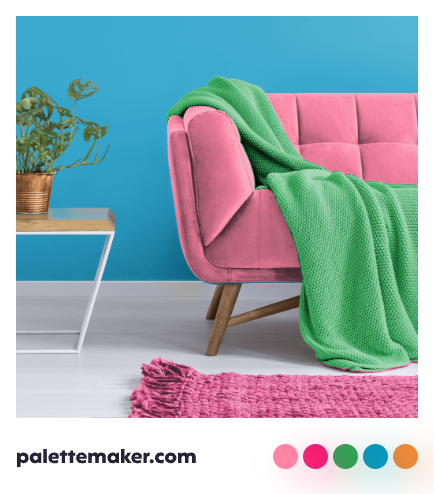 Match Rosa with Soft Blue and Soft Green for a triadic color scheme that has a modern feel with a playful twist. This color scheme creates a festive vibe and is great for party decor and designing one-of-a-kind invitations on an easy-to-use online design application site.