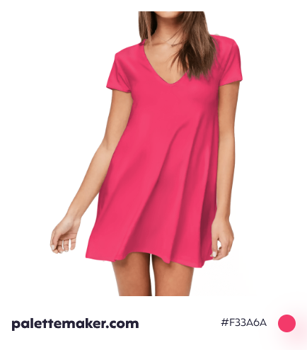 HEX color code is #F33A6A and the RGB is 243, 58, 106