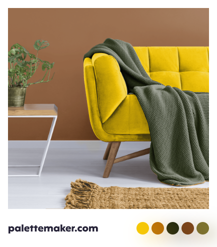 A Deep Brown, Russet, Dark Orange, and Medium Orange monochromatic color palette can feel boring so it is best to incorporate colder colors like Dark Blue or Dark Cyan to enrich Russet’s deep tones.