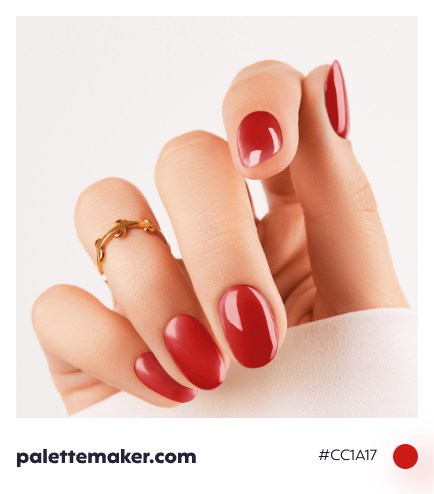 HEX color code is #CC1A17 and the RGB is 204, 26, 23