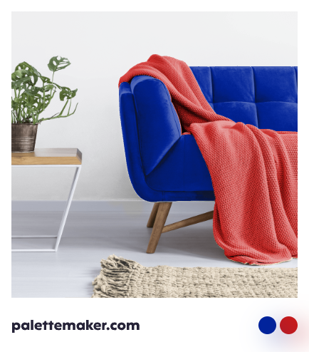 Match Scarlet with strong cyan to produce a complementary color scheme that feels energetic and fun. They are both intense colors and can successfully balance each other out without one feeling more dominant than the other.