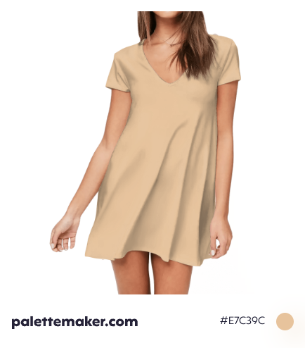 HEX color code is #E7C39C and the RGB is 231, 195, 156