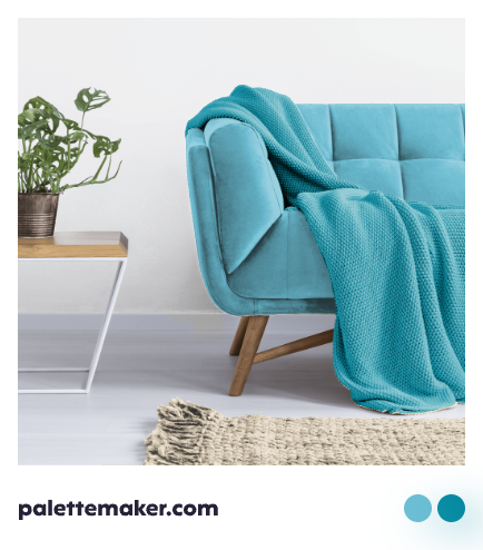 Teal Blue has the advantage of having two distinct color variations when used with the right materials that play with light in an interesting way, so try pairing it with blue variants and green tones to create a mysterious underwater feel.