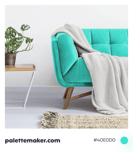 How the color is made: turquoise is made by mixing blue and green pigments with some yellow. And in RGB color space, it is comprised of 64/255 red (~25.1% of red), 224/255 green (~87.84% of green), 208/255 blue (~81.57% of blue). And in CMYK color space, it is comprised of 71% cyan, 0% magenta, 7% yellow, and 12% black.