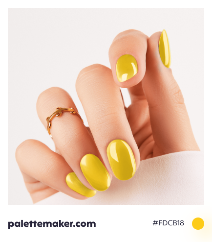 HEX color code is #FDCB18 and the RGB is 253, 203, 24