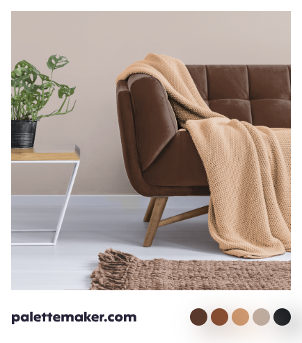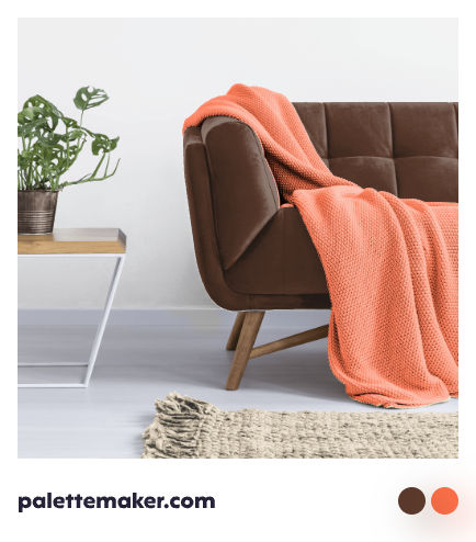 Monochromatic color palettes that have Light Desaturated Orange, Pure Orange, and Walnut will create designs that feel like warm cinnamon drinks by the fireside. For a truly deluxe look, try using Gold accents with Walnut that mimic ornately carved antique dressers from the Regency era.