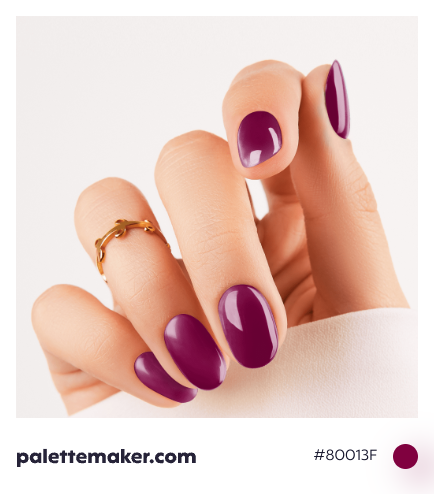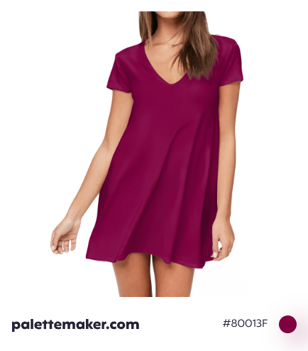 How the color is made: the color is made by adding some blue and black to a red base. And in RGB color space, it is comprised of 128/255 red (~50.2% of red), 1/255 green (~0.39% of green), 63/255 blue (~24.71% of blue). And in CMYK color space, it consists of 99% magenta, 50% yellow, and 49% black without any cyan.