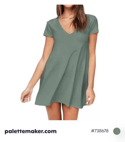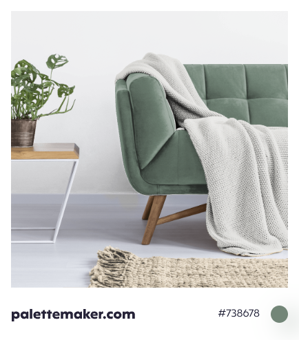 HEX color code is #738678 and the RGB is 115, 134, 120